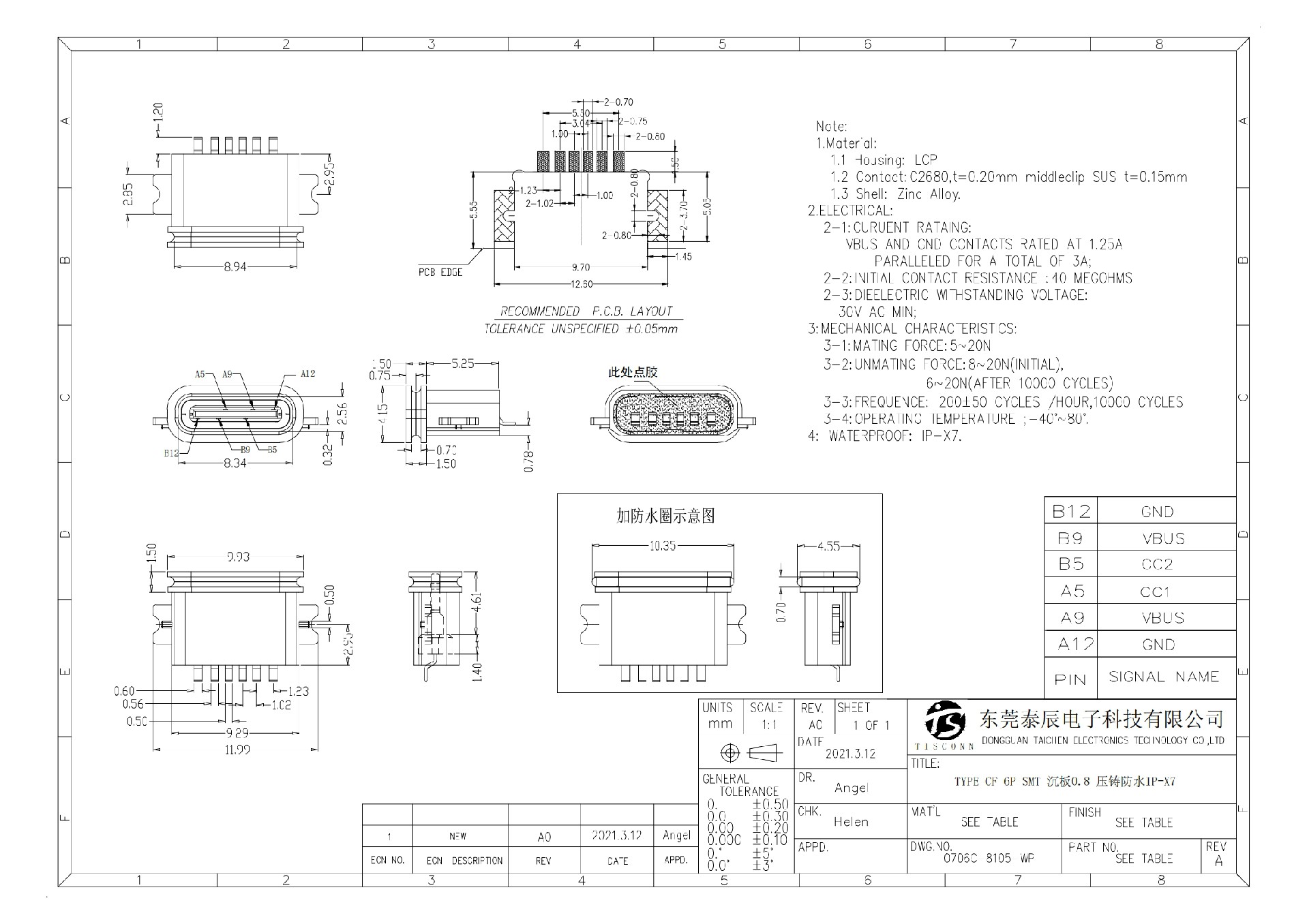 0706C-8105-WP TYPE CF 6P SMT sinking plate 0.8 die cast waterproof IP-X7