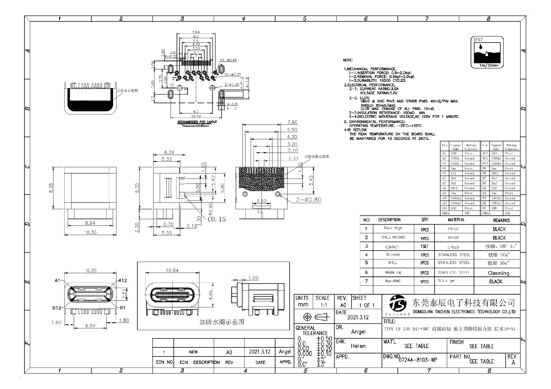 0724A-8103-WP TYPE CF 24P DIP+SMT front insertion and rear pasting board with four foot plug-in board with column waterproof IP-X7