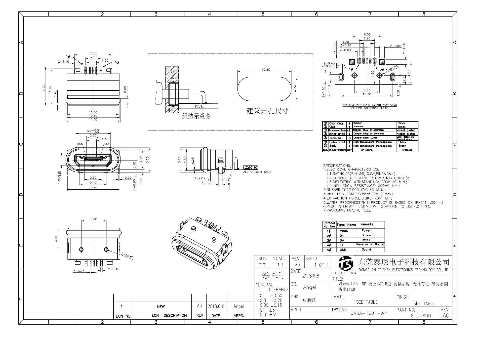 MICRO USB produced by Taichen connector manufacturers is widely used in mobile phones, power packs, speakers, Bluetooth headsets, MP4, cameras, tachographs, PDAs, digital cameras, digital video cameras and portable digital players.