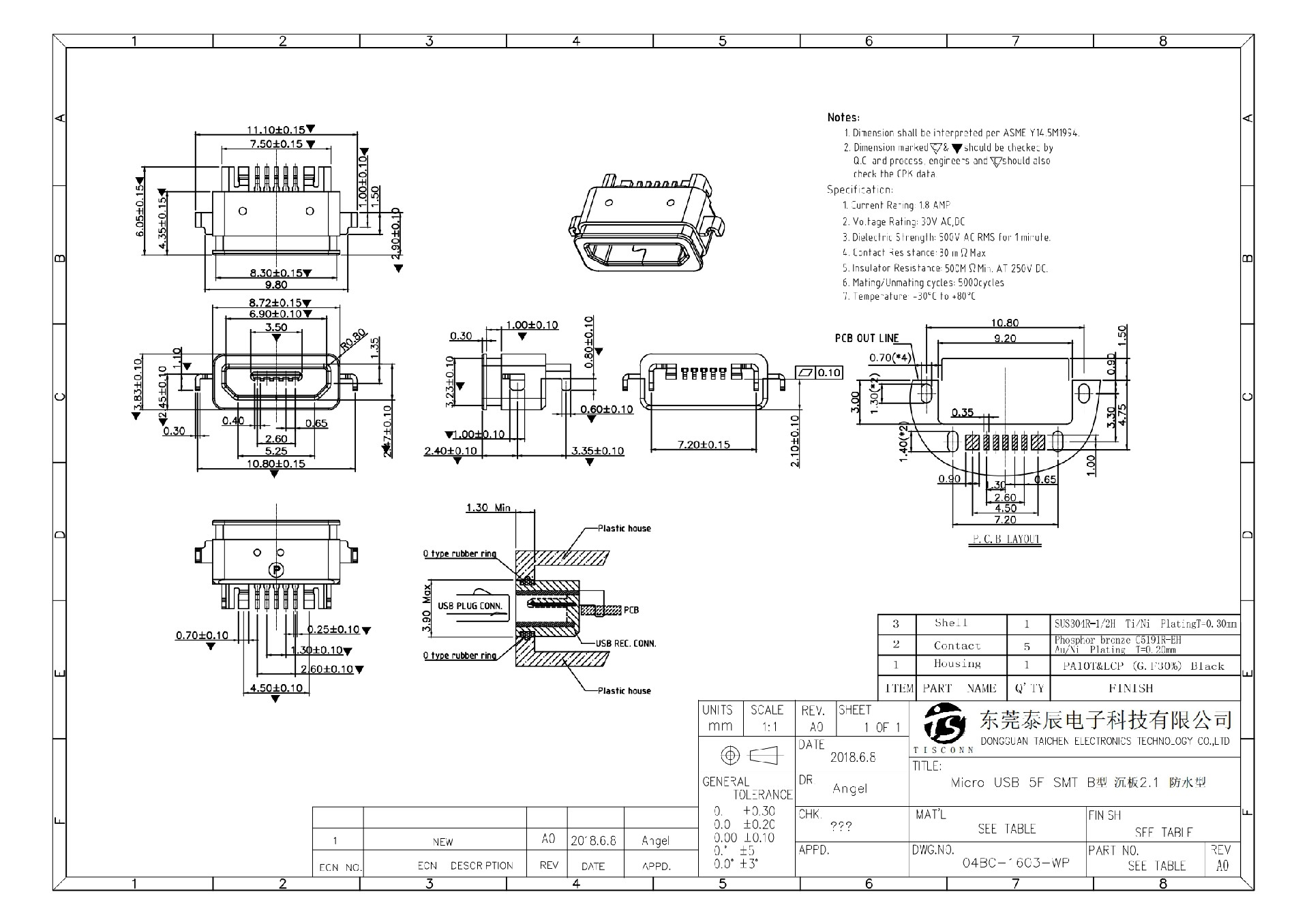 MICRO USB produced by Taichen connector manufacturers is widely used in mobile phones, power packs, speakers, Bluetooth headsets, MP4, cameras, tachographs, PDAs, digital cameras, digital video cameras and portable digital players.