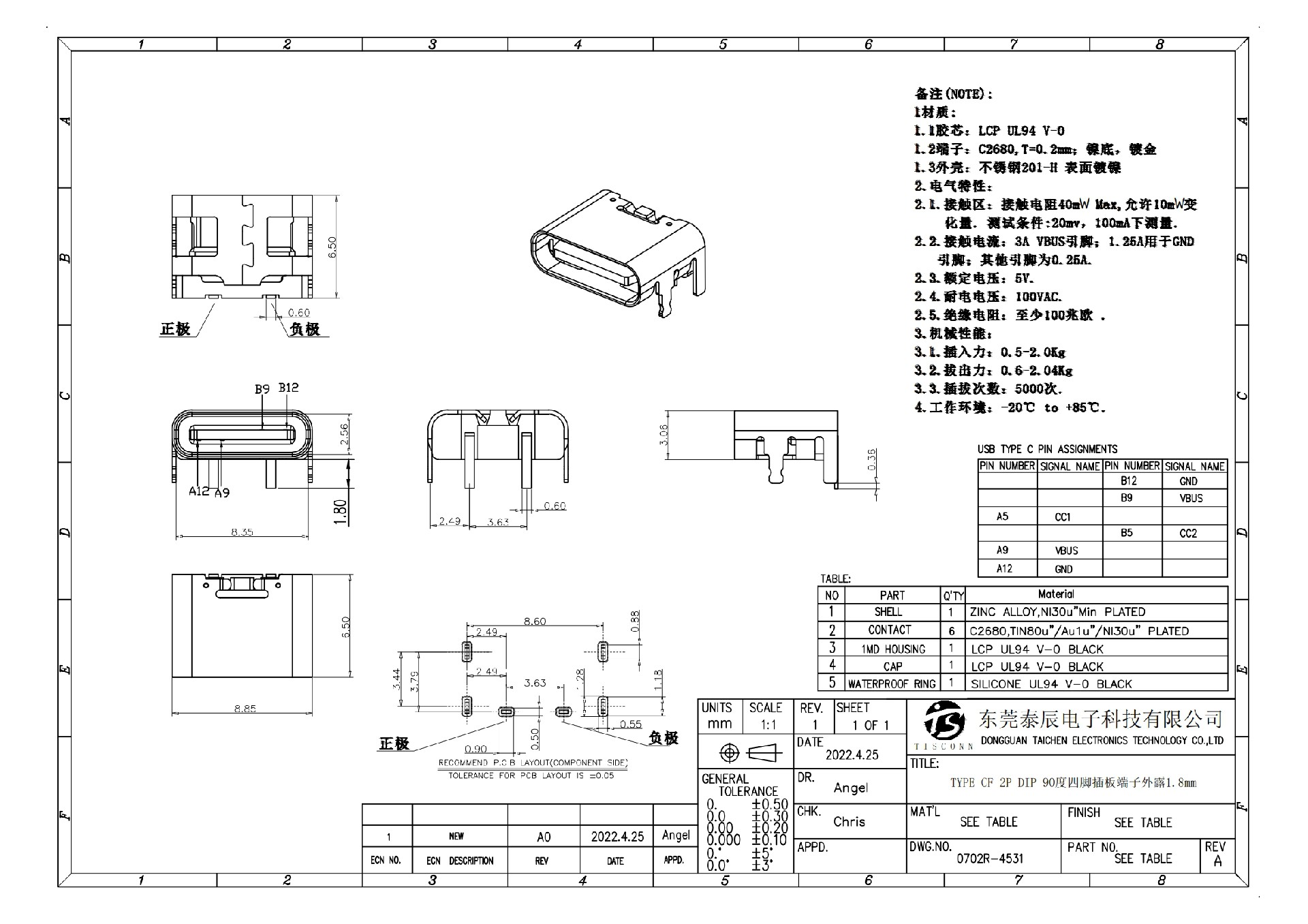 • 0702R-4531   TYPE CF 2P DIP 90 ° four pin plug-in board terminal exposed 1.8mm