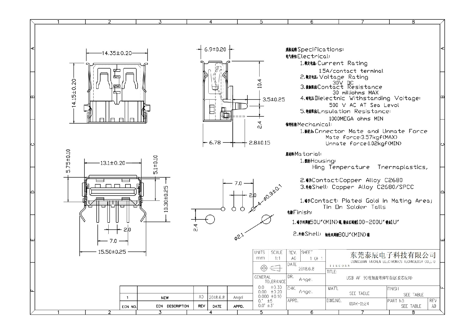01AR-1524 USB AF 90度加盖弯脚有卷边(胶芯反向)