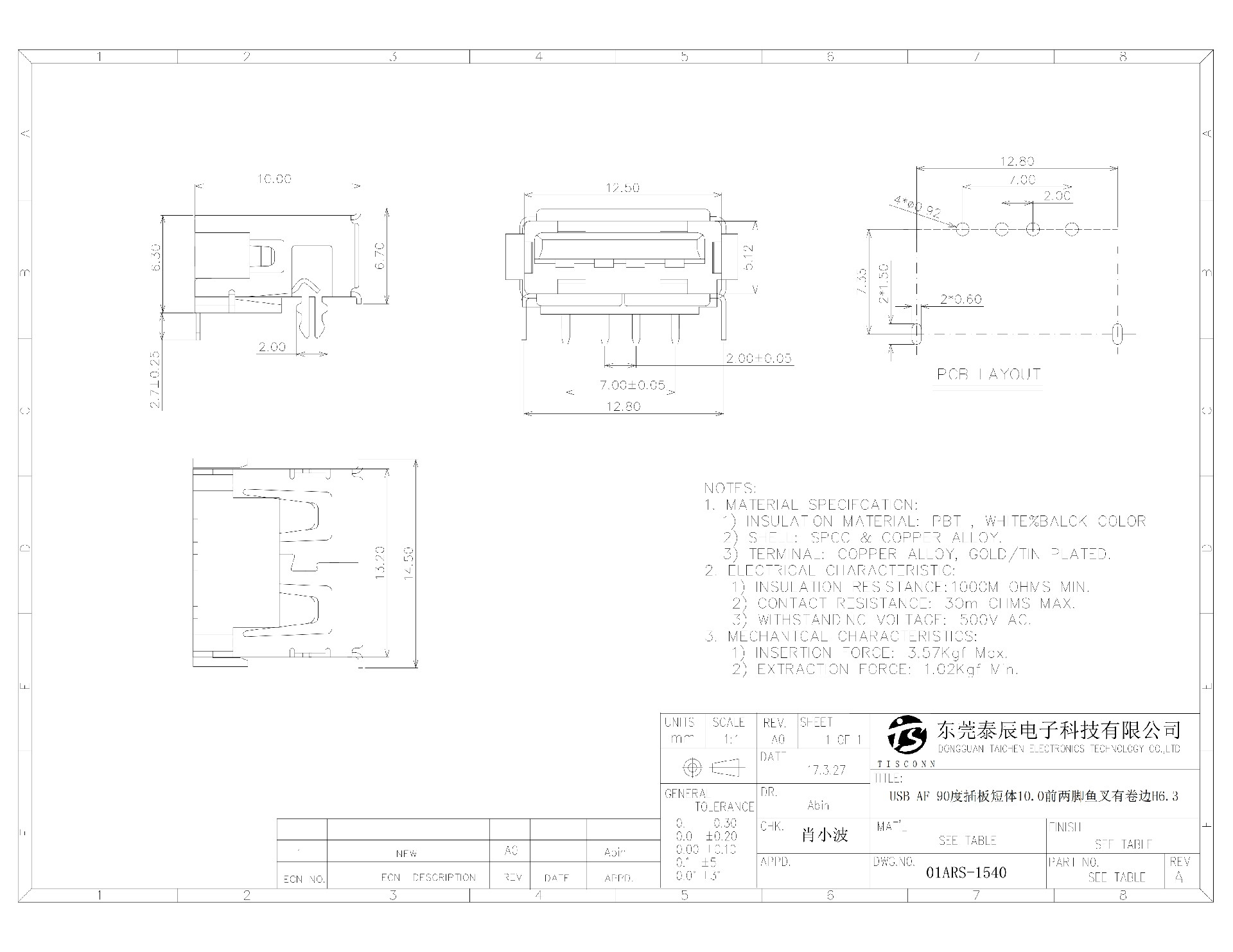 01ARS-1540 USB AF 90度插板短体10.0前两脚鱼叉有卷边H6.3